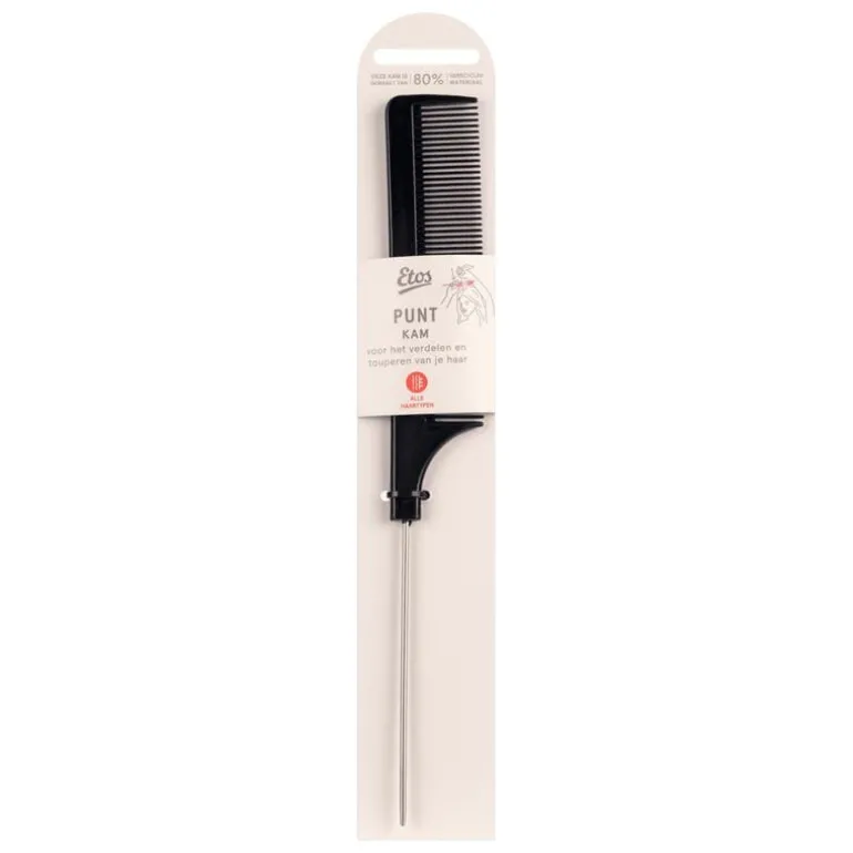 De Etos puntkam is ideaal voor het nauwkeurig verdelen en stylen van je haar. Of je nu een scheiding wilt maken of je haar wilt touperen voor extra volume, deze kam is daar perfect voor. Dankzij het slanke en puntige ontwerp krijg je altijd de gewenste precisie.