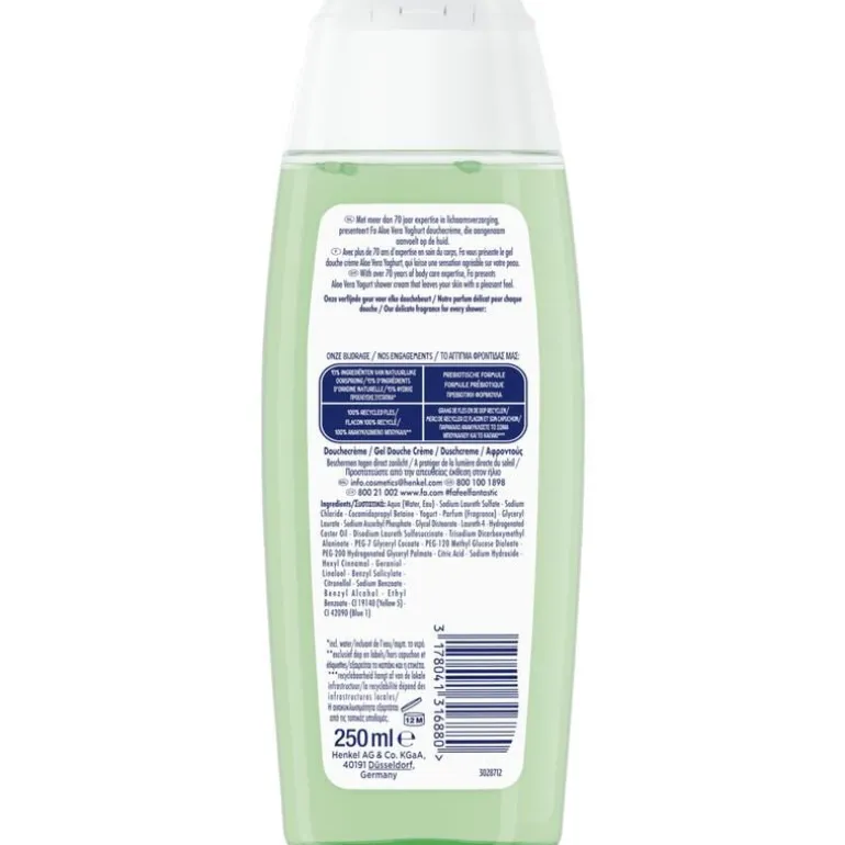 De formule van de Fa Yoghurt Aloe Vera douchecrème is pH-huidneutraal.