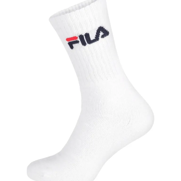 Multipack met 3 paar witte unisex sokken van Fila in de maat 43/46. De sokken hebben een Fila opdruk en zijn gemaakt van 70% katoen/29% polyester/1% elastaan.