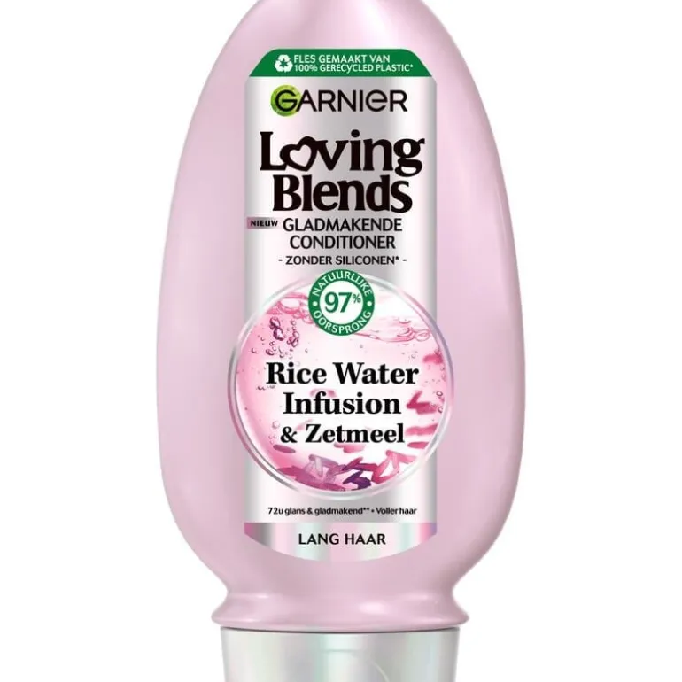 De Loving Blends Rice Water Infusion conditioner van Garnier is een conditioner van 97% natuurlijke oorsprong speciaal ontwikkeld voor lang haar. De conditioner resulteert in 72u glans & zachter haar*.