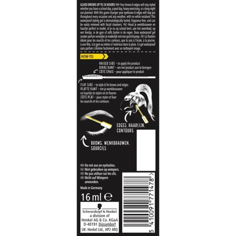 Deze waterproof gel zonder parfum verwijder je makkelijk met een gezichtszeep. De sneldrogende, niet plakkende, transparante gel houdt je wenkbrauwen en haarlijn de hele dag in vorm.
