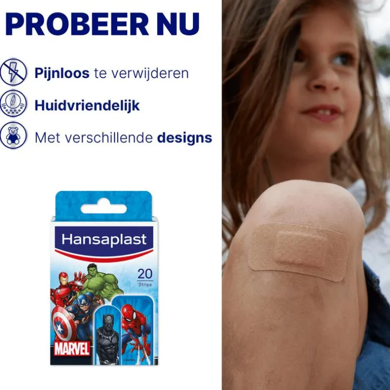 Met deze pleisters met superhelden hoeven jullie je geen zorgen meer te maken over kleine wondjes. Samen kunnen jullie alle uitdagingen aan! Maak een keuze uit diverse favoriete MARVEL figuren en zorg dat je kind enthousiast wordt over dit nieuwe avontuur.