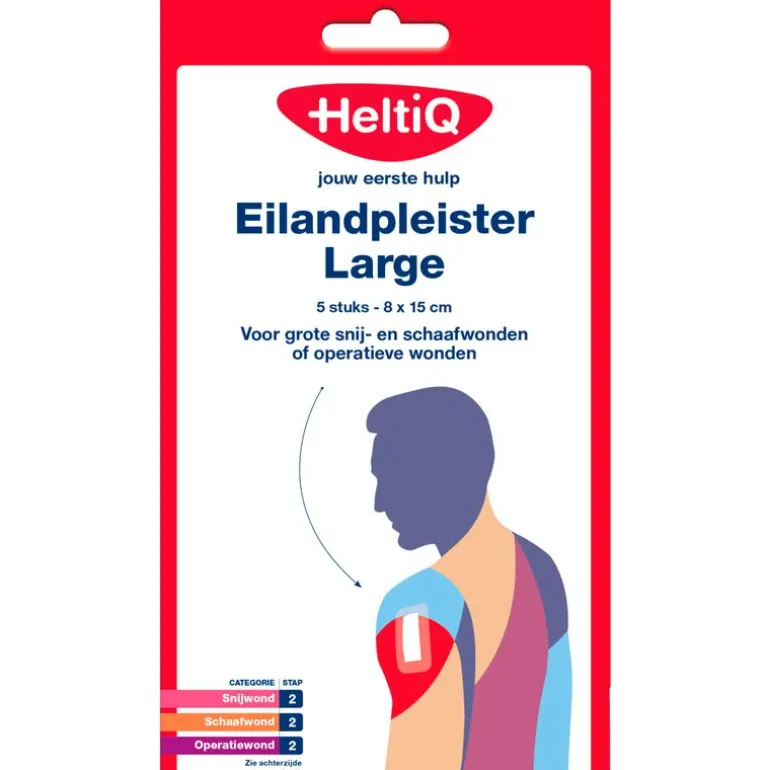HeltiQ Eilandpleisters zijn grote steriele pleisters en bieden bescherming tegen vocht, vuil en bacteriën bij grotere wonden. Dankzij de speciale bovenlaag hecht de eilandpleister zich niet aan de wond.