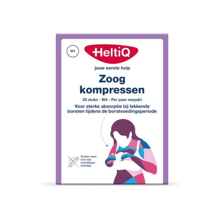 HeltiQ Zoogkompressen zijn ronde pads die je in je BH kunt plaatsen wanneer je borsten melk verliezen tijdens de borstvoedingsperiode. De zoogkompressen bestaan uit superabsorberend materiaal, waarmee ze je overdag en ‘s nachts zekerheid bieden tegen doorlekken.