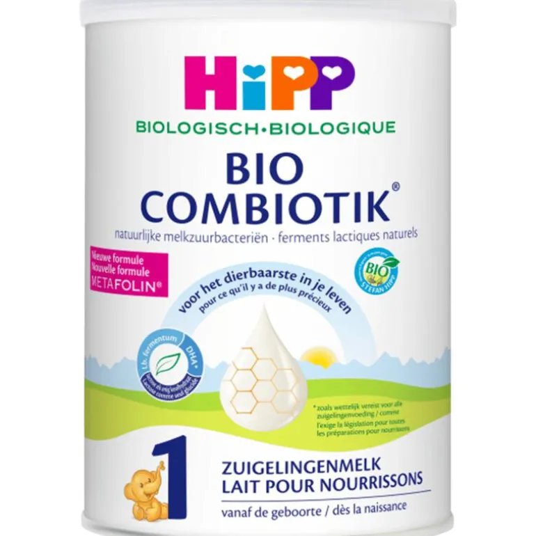 HiPP 1 Bio Combiotik is een complete zuigelingenvoeding verwaardigd op basis van biologische koemelk en te gebruiken vanaf de geboorte. HiPP 1 Combiotik is geschikt in combinatie met borstvoeding, maar ook indien er geen borstvoeding gegeven wordt.