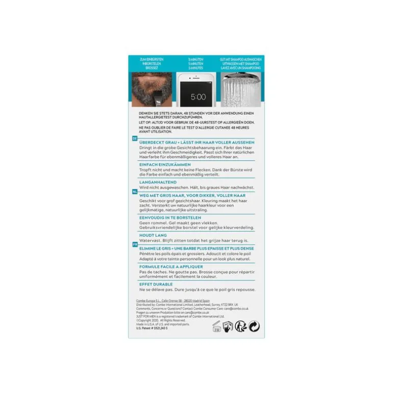 Just For Men Snor & Baard Haarkleuring Zwart herstelt de natuurlijke kleur van snor- en baardharen en laat grijs haar verdwijnen. Met de bijgeleverde applicator is de verf eenvoudig in te borstelen. De speciale formule dringt diep door in harde, moeilijk te kleuren gezichtsbeharing en maakt je snor en baard voller in slechts 5 minuten. De kleuring is een gel, drupt niet en werkt alleen in op de grijze haren waardoor de rest van de baard niet gekleurd wordt.