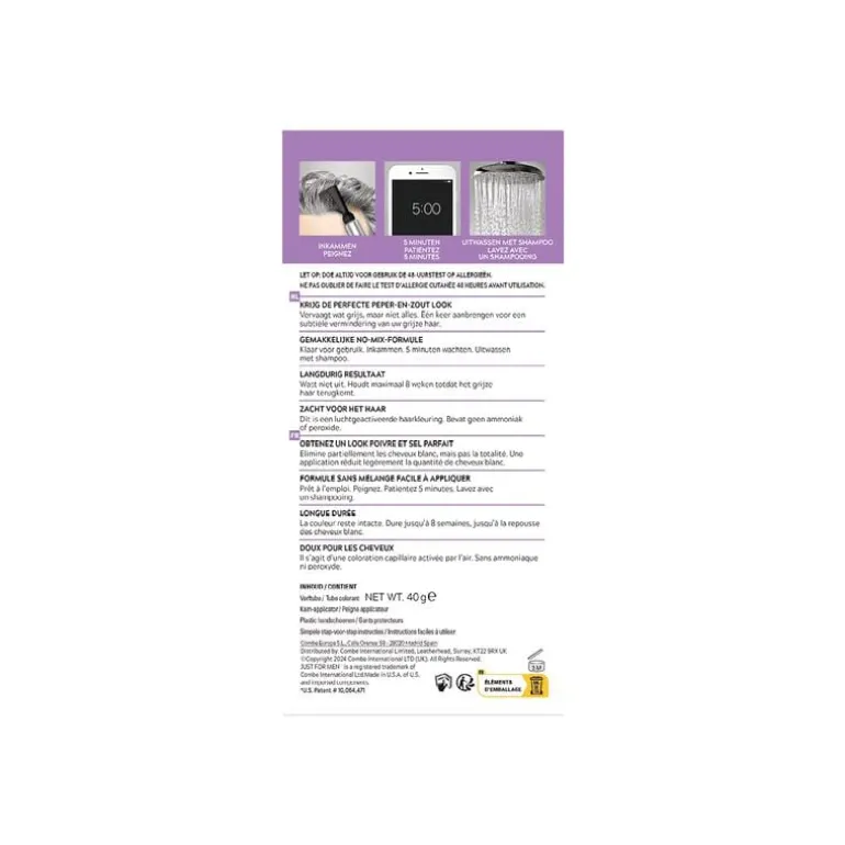 Just For Men Touch of Grey is de perfecte keuze voor mannen die er op hun best uit willen zien zonder hun karakteristieke grijze lokken helemaal te verliezen. Een vleugje grijs straalt volwassenheid en levenservaring uit—het geeft je uitstraling een uniek karakter. Touch of Grey is er voor jou: een eenvoudige, moeiteloze haarkleuring die je look naar een hoger niveau tilt zonder gedoe. Het is zo makkelijk als je haar kammen en klaar in slechts vijf minuten.