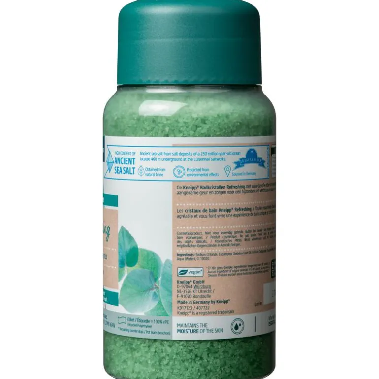 De Kneipp badkristallen Refreshing Eucalyptus met waardevolle etherische eucalyptusolie verspreiden een aangename geur en zorgen voor een bijzondere en verfrissende badervaring.