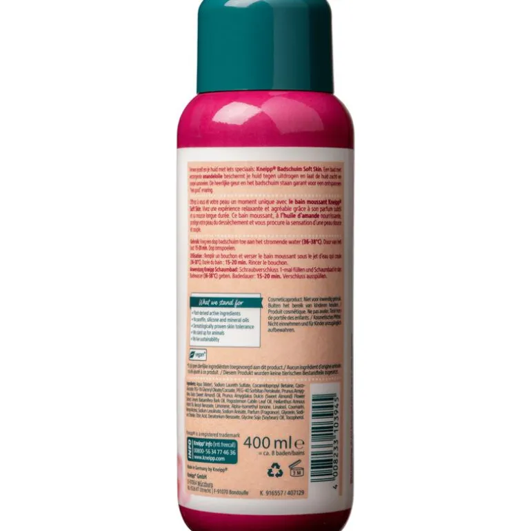 Verwen jezelf en je huid met iets speciaals: Kneipp badschuim Soft Skin – Amandelbloesem. Een bad met verzorgende amandelolie beschermt je huid tegen uitdrogen en laat de huid zacht en soepel aanvoelen. De heerlijke geur en het badschuim staan garant voor een ontspannen “feel good” ervaring.