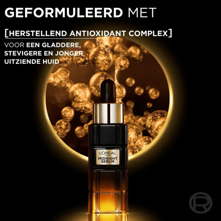 L’Oréal Paris Age Perfect Cell Renaissance Midnight Serum – Gezichtsverzorging – Anti-Rimpel – 30 ml Een anti-aging gezichtsserum met herstellend antioxidant complex om rimpels zichtbaar te verminderen Productbeschrijving Het L’Oréal Paris Age Perfect Cell Renaissance midnight serum bevat een herstellend antioxidant complex met vitamine E. Ondersteunt de natuurlijke celvernieuwing Vermindert zichtbaar rimpels, verstevigt en laat de huid stralen Helpt de huid herstellen, nacht na nacht Voor een gladdere en stevigere huid Herstellend antioxidant complex met neohesperidine en vitamine E Als tekenen van ouderdom zichtbaar worden, zoals rimpels in de huid, is een dagelijkse verzorging van de huid erg belangrijk. L’Oréal Paris Age Perfect Cell Renaissance midnight serum bevat een herstellend antioxidant complex met neohesperidine en vitamine E. Neohesperidine is een ingrediënt dat bijdraagt aan de hydratering, egalisering en het kalmeren van de huid. Het resultaat De volgende ochtend: de huid voelt gehydrateerd aan en ziet er uitgerust uit, zoals na een goede nachtrust Na 1 week: de huid ziet er jonger, stralender en als nieuw uit Na 4 weken: rimpels zijn zichtbaar verminderd en de teint is stralender en de huid ziet er strakker uit.