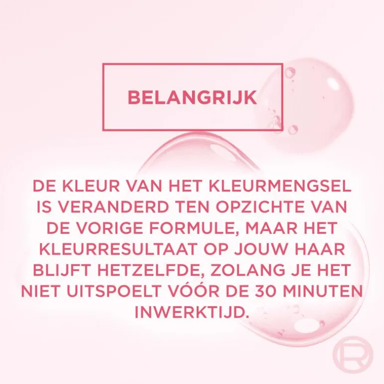 VOORZORGSMAATREGELEN HAARKLEURSTOFFEN KUNNEN ERNSTIGE ALLERGISCHE REACTIES VEROORZAKENLees en volg de instructies.Dit product is niet bestemd voor gebruik bij personen jonger dan 16 jaar.TIJDELIJKE TATOEAGES MET ZWARTE HENNA KUNNEN LEIDEN TOT EEN VERHOOGD RISICO OP EEN ALLERGISCHE REACTIE.Kleur uw haar niet als:• u last heeft van uitslag in het gezicht of van een gevoelige, geïrriteerde of beschadigde hoofdhuid• u eerder een reactie na een haarkleuring heeft gehad• u in het verleden een reactie heeft gehad na een tijdelijke tatoeage met zwarte hennaALLERGIE NEGEREN KAN LEVENSBEDREIGEND ZIJN Het is noodzakelijk een ALLERGIE WAARSCHUWINGSTEST 48 uur vóór iedere haarkleurbehandeling uit te voeren zelfs indien u al eerder een kleurproduct heeft gebruikt.Denk eraan het product 48 uur van te voren te kopen. (lees en volg de gebruiksaanwijzing). Bij een reactie of bij twijfel, raadpleeg een arts voordat u een kleurproduct gebruikt.”De ontwikkelvloeistof’’ bevat waterstofperoxide.“Het kleurproduct”a bevat: fenyleendiaminen, resorcinol, fenyleendiaminen (tolueendiaminen), ammoniak.• Bijgevoegde handschoenen dragen.• Contact van het product met de ogen vermijden. Niet gebruiken voor het kleuren van wimpers of wenkbrauwen. • Bij contact van het product met de ogen onmiddellijk met overvloedig water spoelen • Spoel het haar na de inwerktijd van het product goed uit.Wacht 2 weken na een permanent of een behandeling met een duurzaam gladmakend product.Niet gebruiken als uw haar gekleurd is met henna of een progressieve kleuring. Buiten bereik van kinderen houden.VOLG DE GEBRUIKSAANWIJZING Raadpleeg de ingrediëntenlijst onder dit kader.