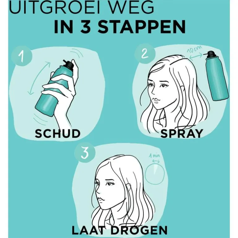 • Wil je dat de uitgroeispray nog beter blijft zitten? Fixeer deze dan met haarlak. Kies idealiter een kleurbeschermende spray, zoals Elnett Satin Kleurbeschermende Fixatie Hairspray