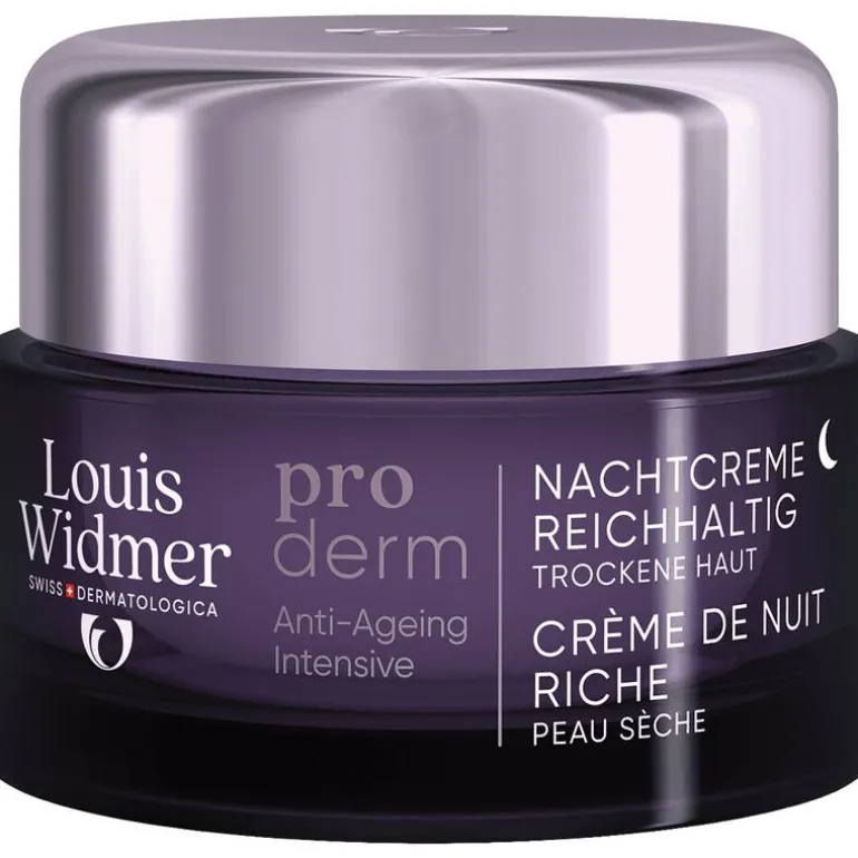 Louis Widmer proderm Nachtcrème Rijke Textuur is een anti-ageing nachtcrème die de huid voedt en regenereert.