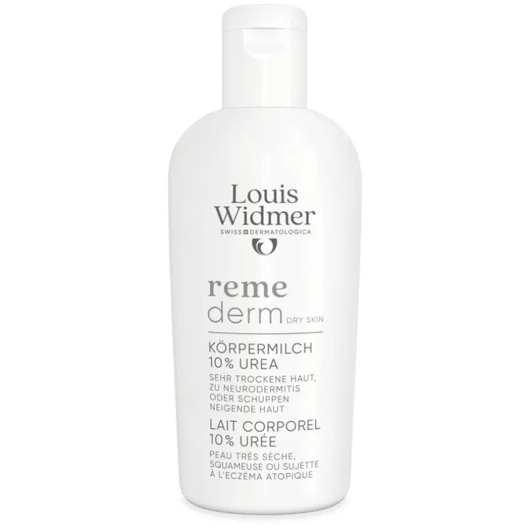 Louis Widmer remederm Lichaamsmelk 10 % Ureum trekt snel in de huid en verlicht irriterende jeuk. Voor een extreem droge, schilferige en eczeemgevoelige huid.