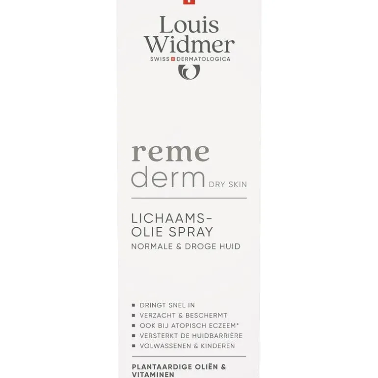 Louis Widmer remederm Lichaamsolie Spray trekt snel in de huid.