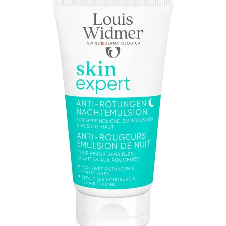 Louis Widmer skinexpert Anti-Roodheid Nachtemulsie is een nachtverzorging die de huid herstelt en kalmeert.