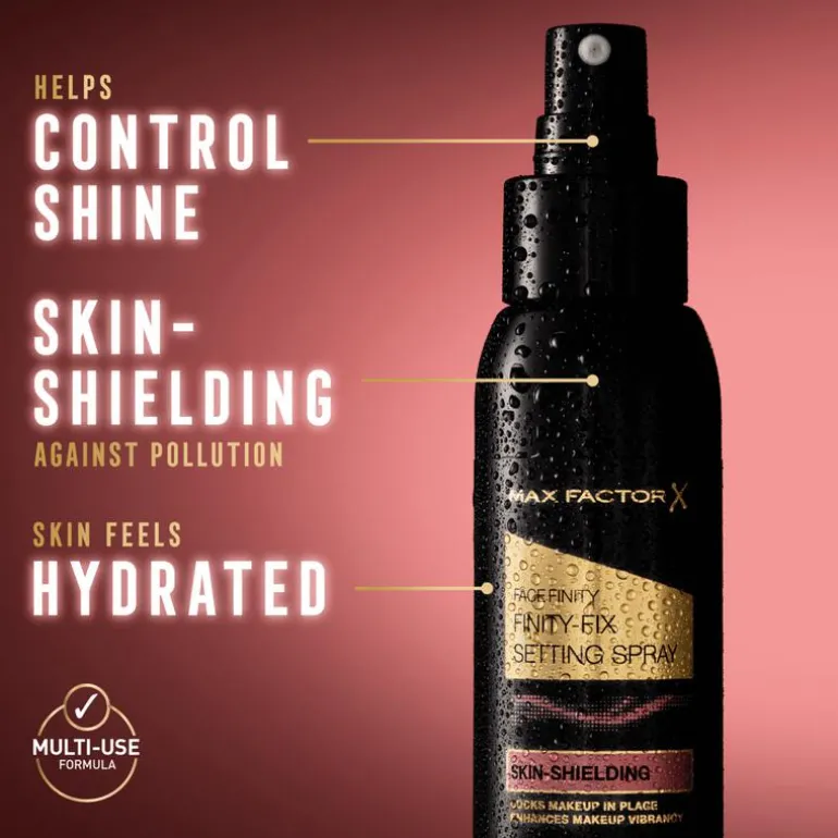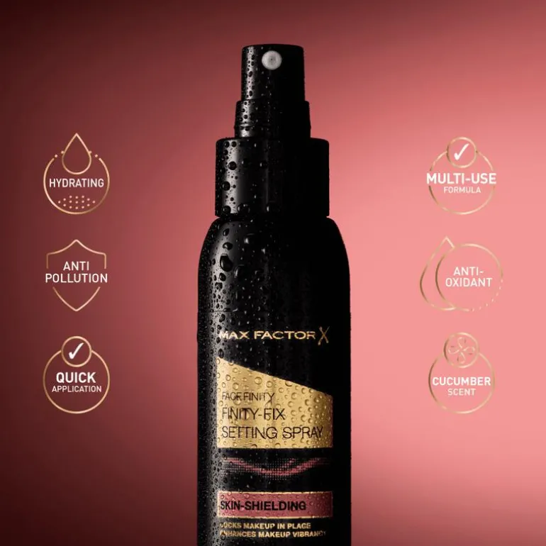 Ervaar een make-uplook die de hele dag perfect blijft zitten met de Max Factor Facefinity Finity-Fix Setting Spray. Deze microscopisch fijne gezichtsnevel fixeert je make-up de hele dag lang en geeft je make-uplook een feilloze matterende finish. Het beschermt de huid tegen vervuiling en bevat vitamine C voor een effectieve antioxiderende werking. De veelzijdige formule droogt snel, hydrateert de huid en geeft make-up zoals oogschaduw, blush en highlighter een levendigere, intensere uitstraling. De revitaliserende gezichtsnevel is subtiel geparfumeerd met een verfrissende, verkwikkende geurnoot van komkommer.