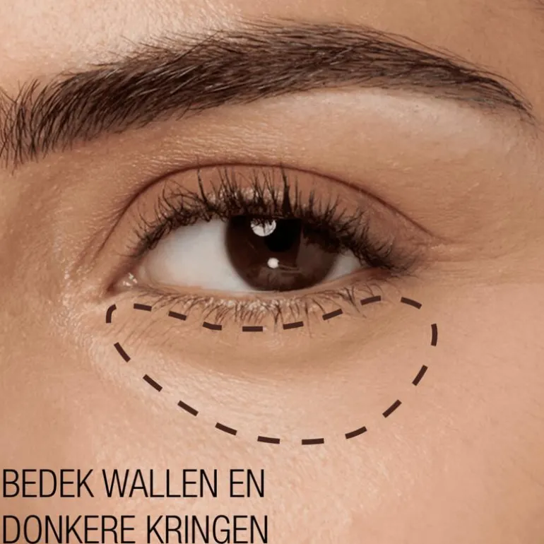 Voor een subtiele correctie breng je de concealer vóór foundation aan. Voor maximale dekking en precieze correctie breng je hem na foundation aan. Zo worden donkere kringen en oneffenheden effectief gecamoufleerd.