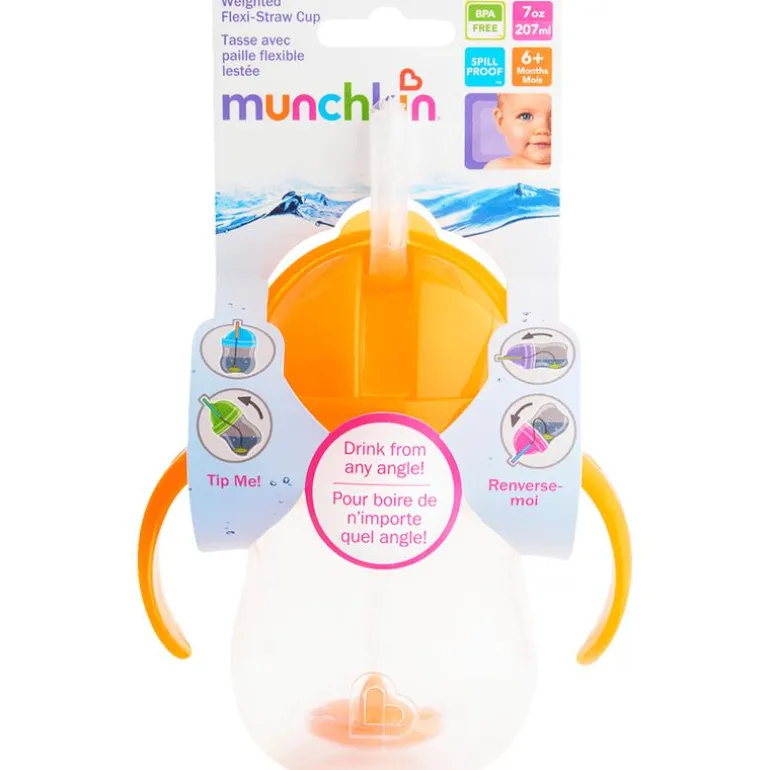 De Munchkin Tip & Sip Straw Cup is de nieuwe oefenbeker met verzwaard rietje. Je peuter kan de beker vasthouden zoals een flesje maar drinken uit een rietje. Uit de drinkbeker met verzwaard rietje kan onder alle hoeken worden gedronken. Dankzij de klepsluiting en Click Lock functie is deze beker ook perfect voor gebruik onderweg. Munchkin staat achter deze lekvrije belofte met een 100 % vervanggarantie. Dicht is dicht, daar kun je van op aan.
