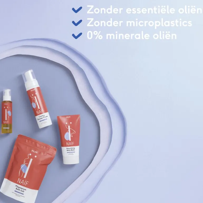 Alle producten van Naïf zijn gemaakt met ingrediënten van natuurlijke oorsprong, vegan en dermatologisch getest. Ook bevatten ze geen microplastics.