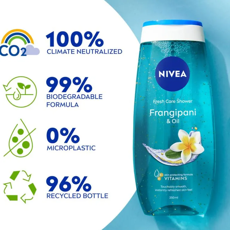 NIVEA Hawaii Flower & Oil Douchegel 250ml zorgt voor een onmiddellijk verfrissend huidgevoel. Deze douchegel met vitamine C, E & olieparels beschermt en verzorgt de huid op natuurlijke wijze. NIVEA’s douchegel voor iedere dag maakt van je douchebeurt een verfrissende ervaring. De kalmerende Hawaii Flower-geur biedt de huid een gehydrateerd en gezond huidgevoel. Deze douchegel is pH-huidneutraal, heeft een 99% biologisch afbreekbare formule en wordt geleverd in een fles die voor 96% uit gerecycled materiaal bestaat*. *uitgezonderd dop & labels.