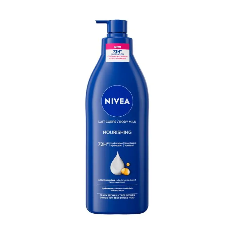De nieuwe, verbeterde formule van de NIVEA Verzorgende Body Milk hydrateert de huid voor 72 uur* (klinisch bewezen). De verbeterde formule bevat 100% puur hyaluronzuur, zachte amandelolie en een voedend serum. De Body Milk biedt intensieve verzorging en is perfect voor de droge tot zeer droge huid. Het laat de huid gladder en zachter aanvoelen. De body milk heeft een zeer lichte formule, niet vettig en trekt snel in. Ervaar langdurige verzorging en een huid die gehydrateerd aanvoelt, de hele dag door. Geef je huid de aandacht die ze verdient met de NIVEA Verzorgende Body Milk. *Instrumentele test, 42 vrijwilligers.