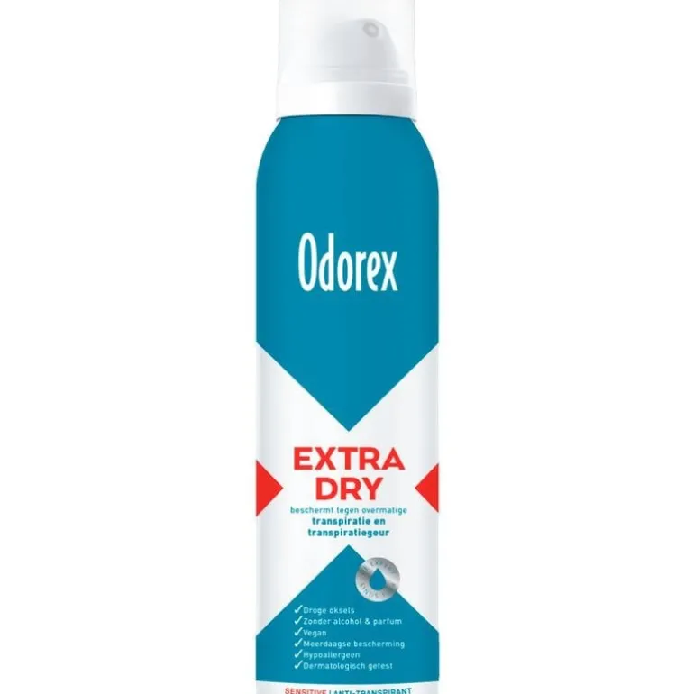 Odorex Extra Dry onderdrukt op een verantwoorde wijze overmatige transpiratie en voorkomt transpiratiegeur, ook op de momenten dat je extra zekerheid nodig hebt. Door de unieke formulering blijft de antitranspirant langer werkzaam dan een reguliere deodorant.