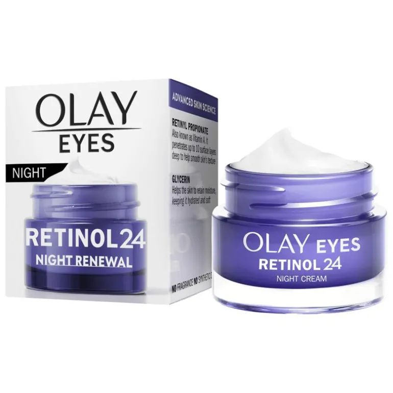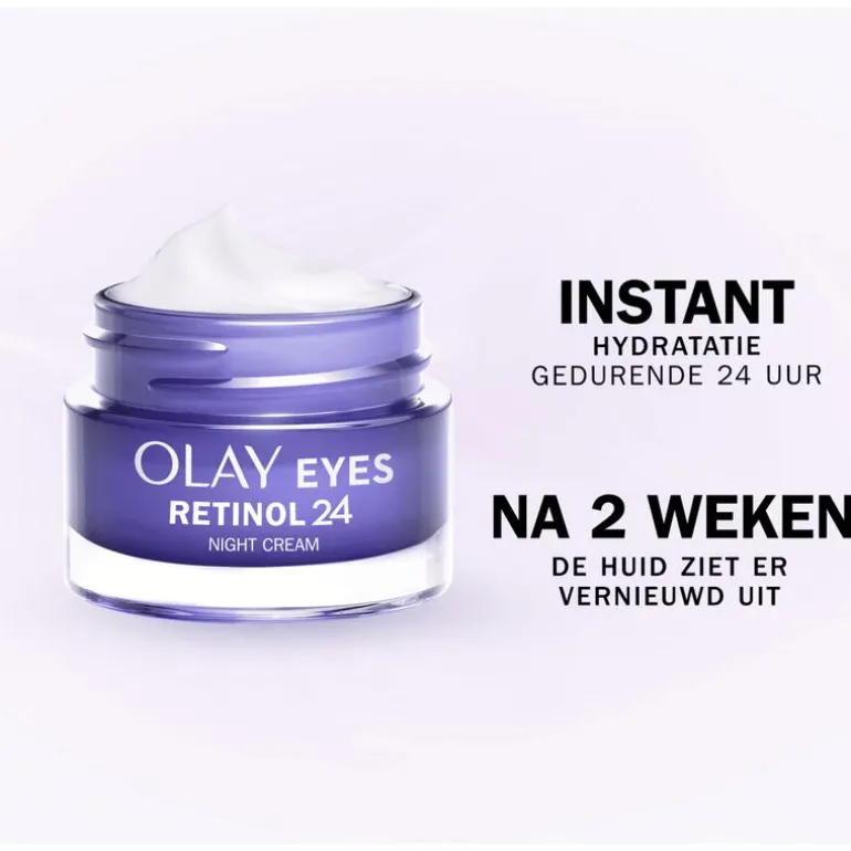 - Vernieuw de huid onder je ogen gedurende de nacht met Olay Retinol24 oogcrème! De kracht van een drievoudige werking: gladmaken, vernieuwen, 24u hydrateren