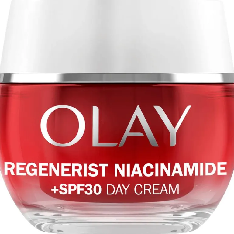 Bestrijd de zichtbare tekenen van huidveroudering met Olay Regenerist Niacinamide Actief verstevigende hydraterende crème met SPF30. De krachtige formule is ontworpen voor zichtbare resultaten na verloop van tijd: ze hydrateert onmiddellijk en 24 uur lang en al na 14 dagen is de huid stevig en zijn fijne lijntjes zichtbaar verminderd. En dat is niet alles: 93% van de gebruikers ervaart al na 1 dag een gladde huid. De formule is vakkundig vervaardigd met een combinatie van 99% pure niacinamide, die tot 10 lagen diep doordringt in de huid om celvernieuwing van het huidoppervlak te helpen activeren, en vitamine E, een bewezen antioxidant die schade door vrije radicalen bestrijdt en helpt om de huid er jonger uit te laten zien. De formule bevat ook de unieke SPF30 SolaSheer-technologie van Olay, die doeltreffende bescherming biedt tegen schadelijke UVA- + UVB-stralen, de meest voorkomende oorzaak van vroege tekenen van huidveroudering.