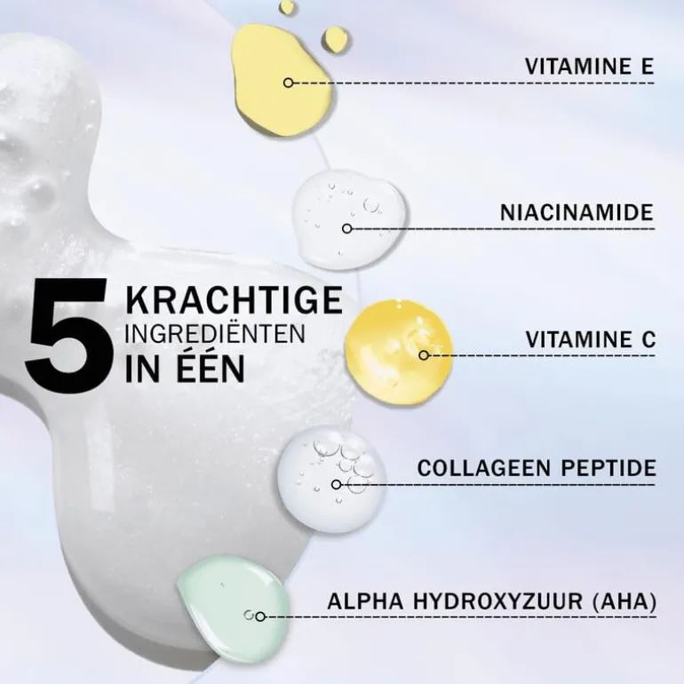- Verrijkt met 5 krachtige ingrediënten: Olay Super Serum is samengesteld met niacinamide, vitamine C, collageenpeptide, vitamine E en AHA. De ultieme combinatie voor de beste huid ooit!