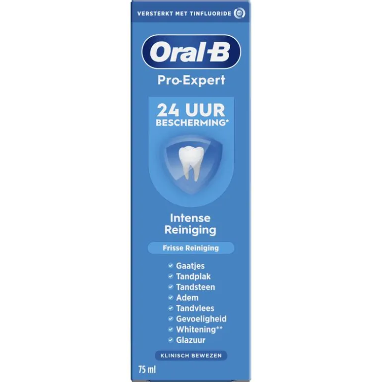 Oral-B Pro-Expert Intense Reiniging biedt 24 uur bescherming tegen tandplak bij twee keer per dag poetsen.
