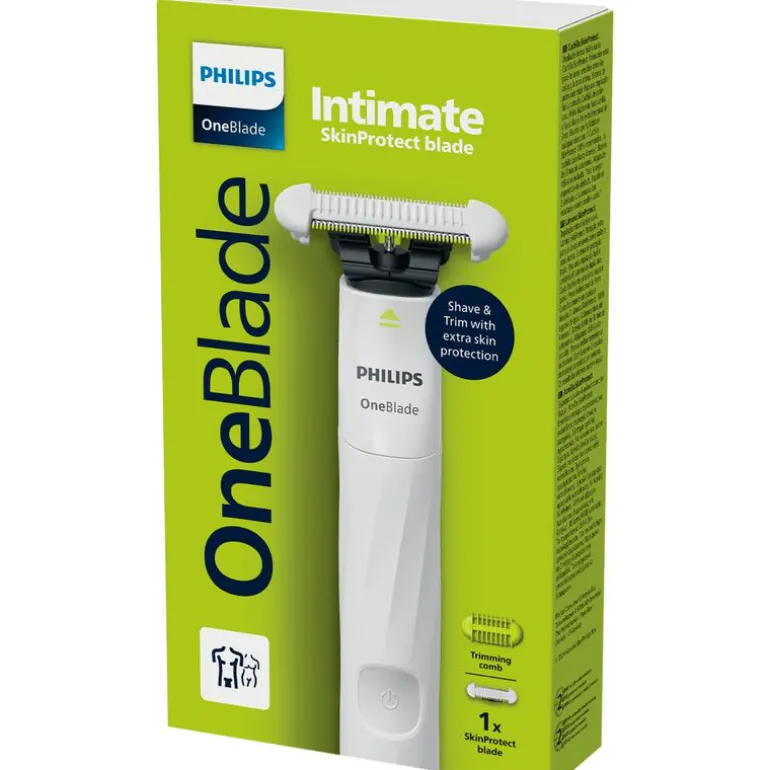 Ga voor comfortabel intiem scheren met OneBlade Intimate! Het SkinProtect-mesje met extra laag bescherming is ontworpen om je huid te beschermen tegen sneetjes, wondjes en huidirritatie. Dankzij het unieke design wordt je huid strakgetrokken, voor minder frictie en optimale resultaten. Scheer schaamhaar comfortabel af of gebruik de 3mm dubbelzijdige trimkam voor een snelle en efficiënte trimbeurt. Gebruik OneBlade Intimate droog, met scheerschuim of onder de douche. Elk mesje gaat tot 4 maanden mee*.