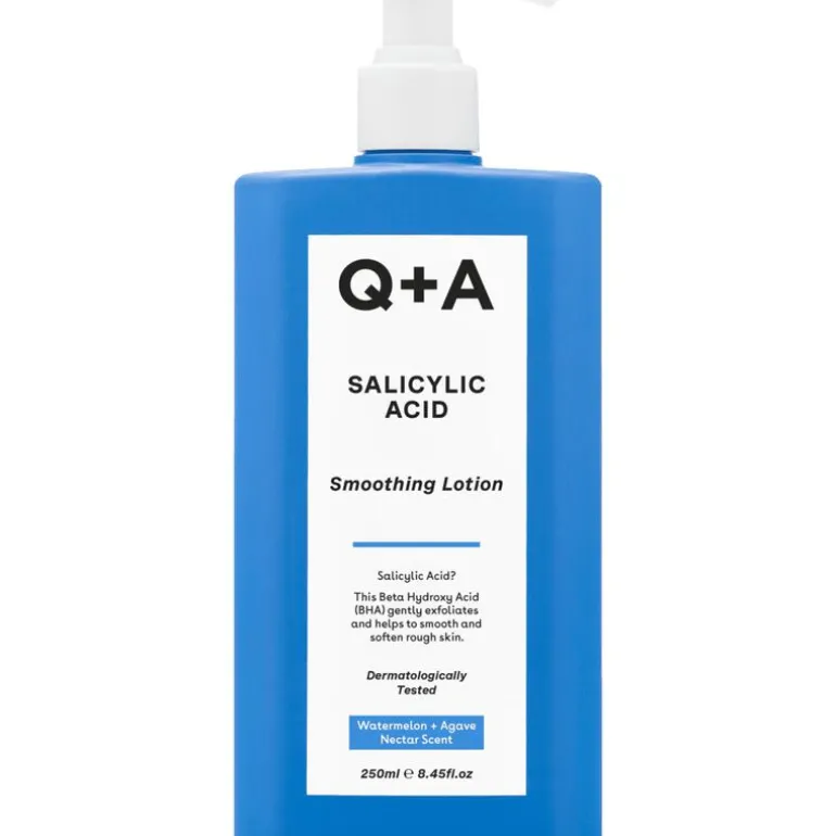 Deze Q+A lichtgewicht Salicylic acid smoothing body lotion is speciaal ontwikkeld voor de gestreste huid! Salicylzuur is een BHA die de huid exfolieert en puistjes aanpakt die ontstaan door de ophoping van dode huidcellen. Onze Salicylzuur Lotion is het perfecte product voor mensen die gevoelig zijn voor ‘backne’ en ongewenste huidtextuur.
