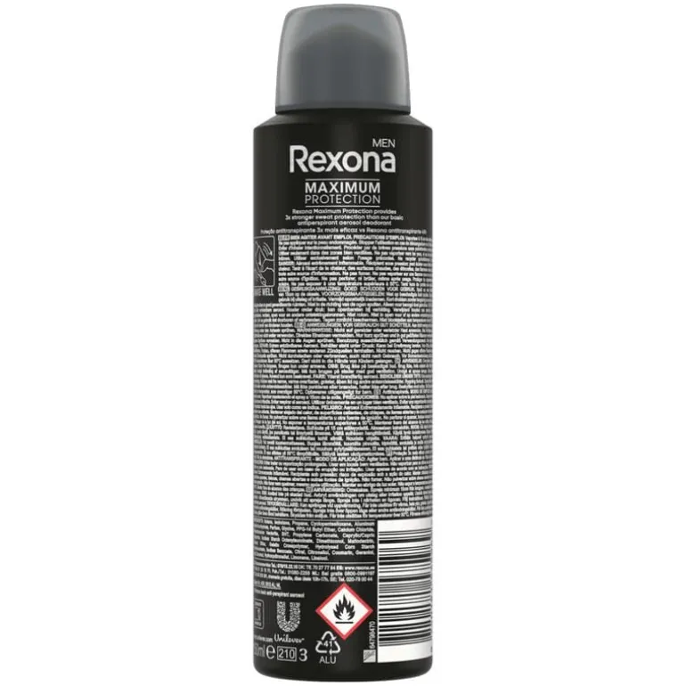 Rexona Men Maximum Protection Cobalt Dry Anti-Transpirant Spray is speciaal ontworpen om 3x meer bescherming te bieden dan onze reguliere anti-transpirant deodorant. Het geeft de krachtigste bescherming tegen zweet en ongewenste lichaamsgeur en helpt om tot 96 uur te beschermen tegen overmatig zweten. Hierdoor ben je optimaal beschermd tegen elke verrassing die de dag je brengt. Zo blijf je fris, wat je ook doet. Deze anti-transpirant spray heeft een frisse geur van ijs en munt die gedurende de hele dag blijft. Ga daarom elke dag een stapje verder. Er is geen reden om het niet te doen. Schitter tijdens die presentatie op kantoor, verleg je grenzen in de sportschool, ren harder naar de bus en haal hem in. Met Rexona Maximum Protection ben je niet te stoppen. Blijf doorgaan en maak je geen zorgen over zweet.