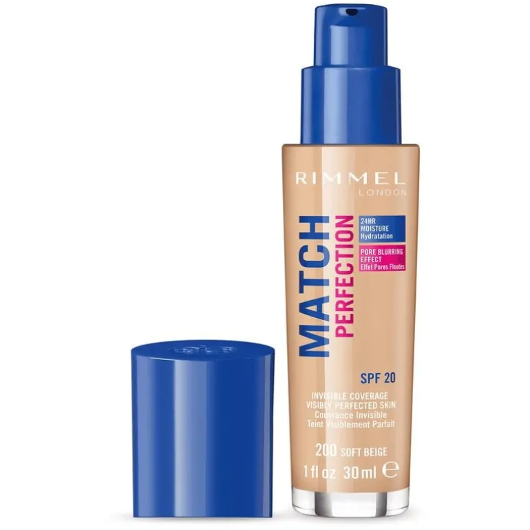 Met behulp van een ‘smart-tone’ technologie smelten de kleurpigmenten naadloos samen in de huid voor een natuurlijk ogende effect. De gewichtloze, zijdezachte Match Perfection Foundation heeft een medium dekking waardoor imperfecties worden gecamoufleerd.. Lichtreflecterende, ‘soft focus’ poeders helpen fijne lijntjes en vlekjes te vervagen en zorgen voor een stralende basis. Going above and beyond… Rimmel gaat verder en heeft een flinke voorraad aan hydraterende ingrediënten toegevoegd waaronder vitamine E om je huid te beschermen en te verbeteren. Dan is er nog een rijke variatie aan foundation tinten, van zeer licht tot donker – het vinden van jouw perfect match kan niet eenvoudiger!