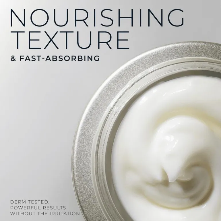 Retinol is een retinoïde, een derivaat van vitamine A dat van nature in de huid voorkomt. Onze exclusieve formule versnelt het verwijderen van oude, doffe huidcellen op het oppervlak en onthult frisse, nieuwe. Het resultaat is een levendige en gezonder uitziende huid.