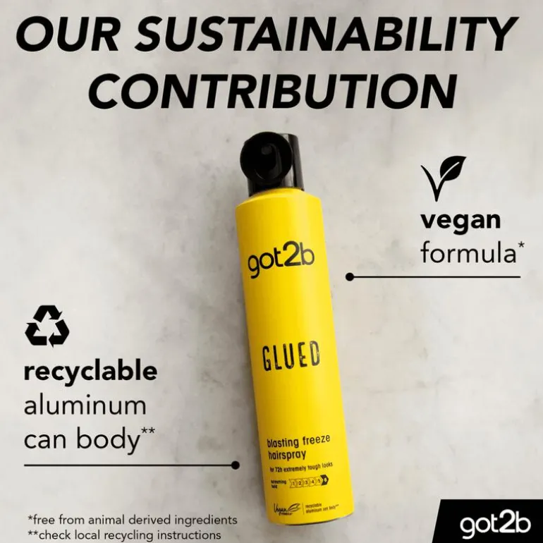 Got2b Glued Blasting Freeze Hairspray – voor extreem stoere looks met een hold tot 72 uur tot de volgende wasbeurt. Gebruik het als een spray, biedt een hold als lijm. Zonder het haar te laten plakken of uit te drogen, geschikt voor veel verschillende haartypes. De formule is vegan*. *Zonder ingrediënten van dierlijke oorsprong.