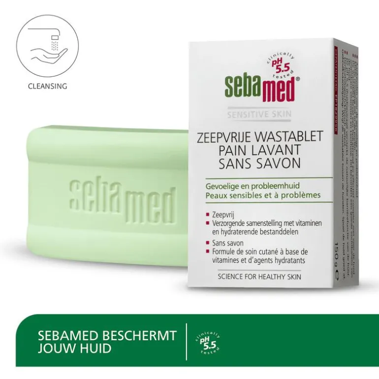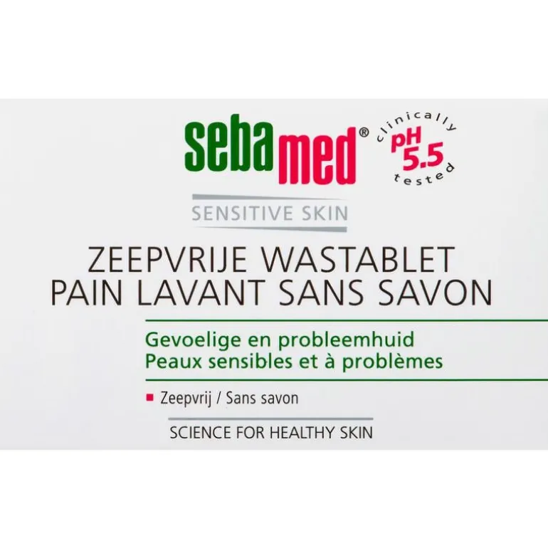 Met de Zeepvrije Wastablet van Sebamed ga je voor een stukje nostalgie. Wie had er vroeger nu niet een lekker stuk zeep in huis, maar dan zonder de nadelen van zeep. De Zeepvrije Wastablet reinigt het gezicht, handen en lichaam tot diep in de poriën en het beschermt de huid tegen invloeden van buitenaf. Daarbij is het product zeer effectief bij acné, puistjes, mee-eters en zeepallergie. De huidneutrale pH-waarde van 5,5 versterkt de natuurlijke beschermingslaag van de huid. Zo blijft de huid gezond en in topconditie. Ontwikkelt door en met dermatologen. Dermatologisch/klinisch getest.