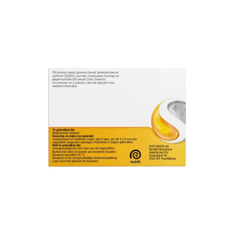 2-3 uur tussenpozen aanhouden, tablet langzaam opzuigen. Bij geen verbetering van de klacht niet langer dan 3 dagen gebruiken zonder overleg met arts.