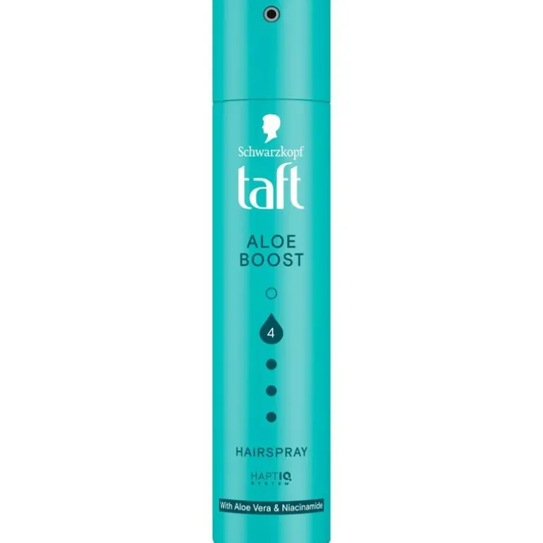 Taft Aloe Boost Hairspray versterkt en verzorgt het haar, voor een langdurige hold en een zachte finish zonder te plakken. De formule bevat aloe vera om het haar te hydrateren en te verzorgen, en niacinamide om het haar te versterken. Het helpt je kapsel te beschermen tegen vocht. Deze spray bevat het HAPTIQ System, dat micro-bindingen in het haar creëert en de haarstructuur versterkt. Voor een prachtig resultaat dat je ziet en voelt.