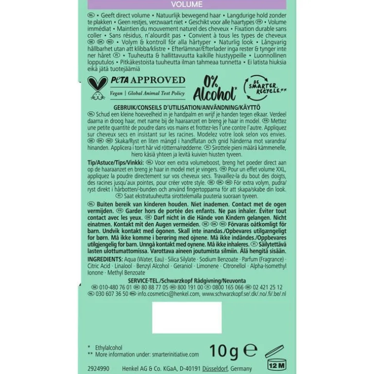 et maakt de haaraanzet net even wat stroever en geeft meer structuur waardoor je haar meer volume krijgt en beter in model blijft zitten. Dankzij het collageen-bamboecomplex zorgt het voor langdurig volume met behoud van de natuurlijke beweging van het haar. De volume poeder maakt het haar niet plakkerig of droog.