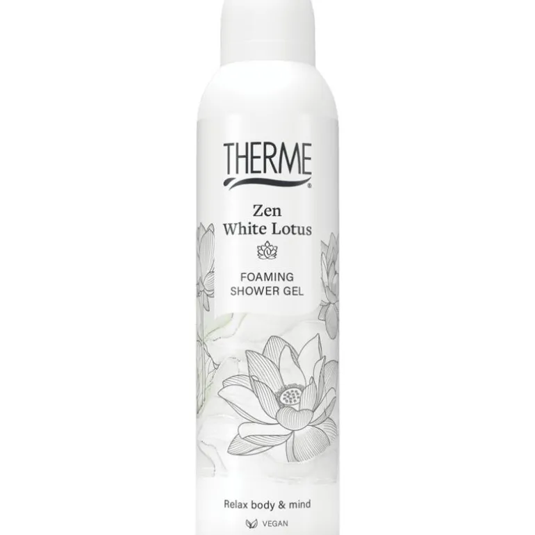 Therme Zen White Lotus Foaming Shower Gel is een heerlijke douchegel die transformeert naar een rijk schuim. Geniet van de serene geur van witte lotus gecombineerd met aromatische jasmijn en subtiele witte musk.
