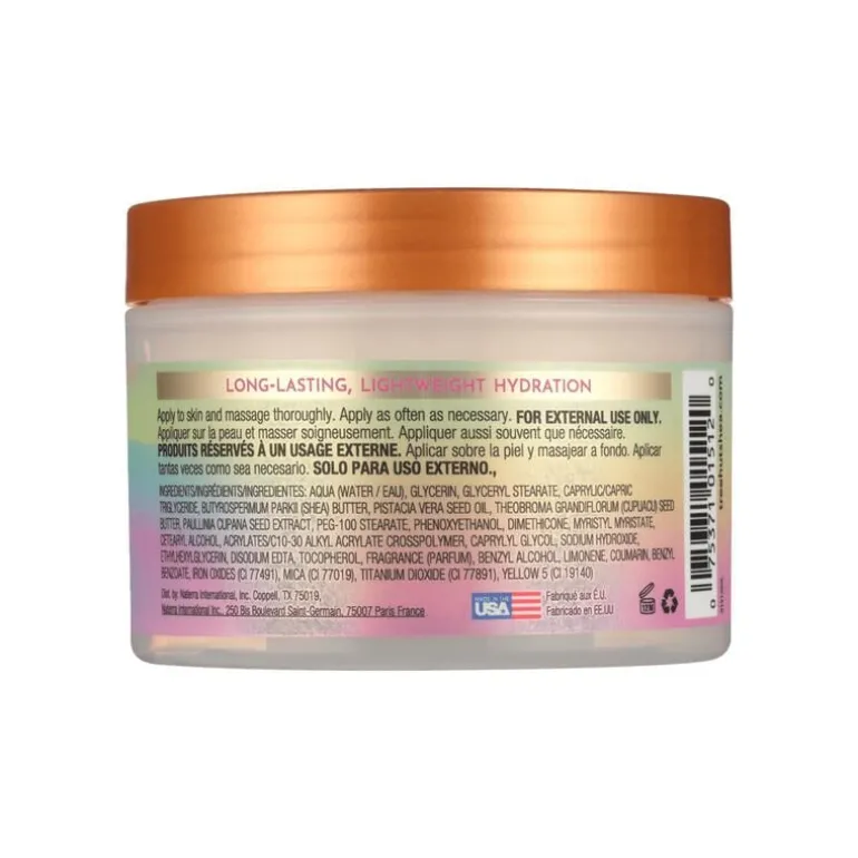 Laat je huid smelten van geluk met de fluweelzachte Tree Hut Whipped Body Butter in de geur Tropic Glow. Deze rijke, luchtige body butter is een ultieme verwennerij voor de droge tot zeer droge huid. De romige textuur glijdt moeiteloos over de huid, trekt snel in en laat geen vettig laagje achter – alleen een zijdezachte, diep gevoede huid die heerlijk ruikt.