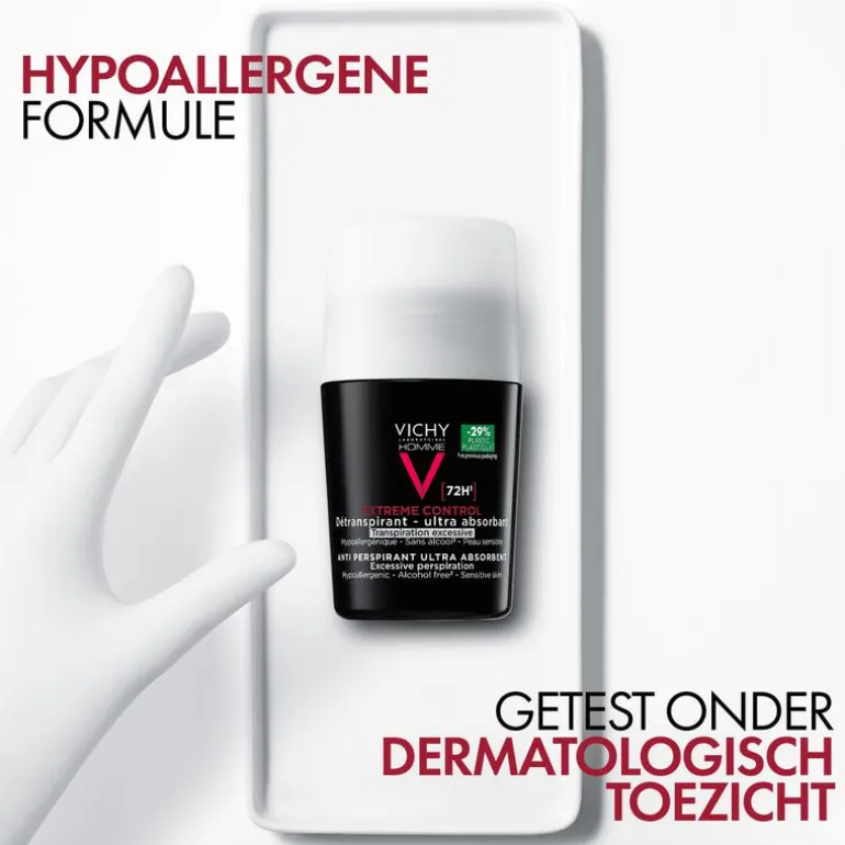 Vichy Homme 72h Anti-transpirant Deodorant is de ideale roll-on voor mannen die op zoek zijn naar een effectieve, langdurige deodorant in elke situatie. Dankzij de aanwezigheid van sterk absorberende minerale zouten wordt transpiratie gecontroleerd tot 72 uur na het aanbrengen.