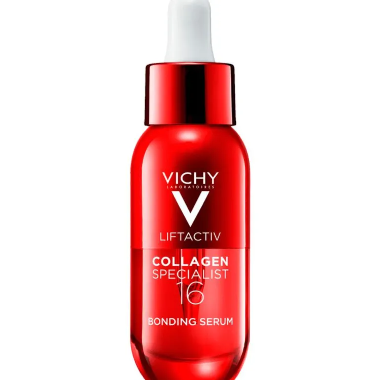 Naarmate je ouder wordt, begint de collageenproductie af te nemen. Dit versnelt tekenen van huidveroudering, vooral rondom de ogen. Het nieuwe Liftactiv Collagen 16 Serum, ontwikkeld door de experts van Vichy, helpt 16 tekenen van huidveroudering* bestrijden, dankzij de innovatieve en unieke Co-Bonding Technologie: wallen, donkere kringen, rimpels onder de ogen, onzuiverheden, fijne lijntjes, stevigheid, huidverslapping, soepelheid, huidtextuur, tekenen van vermoeidheid, toniciteit, veerkracht, glans, elasticiteit, hydratatie, gelijkmatigheid.