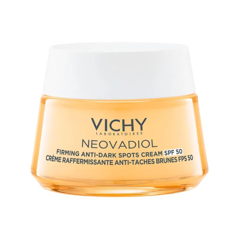 Vichy Laboratoires heeft de Neovadiol Verstevigende Anti-pigmentvlekken dagcrème met SPF50 ontwikkeld. Zijn drievoudige werking vermindert leeftijdsvlekken, rimpels en maakt de huid steviger.
