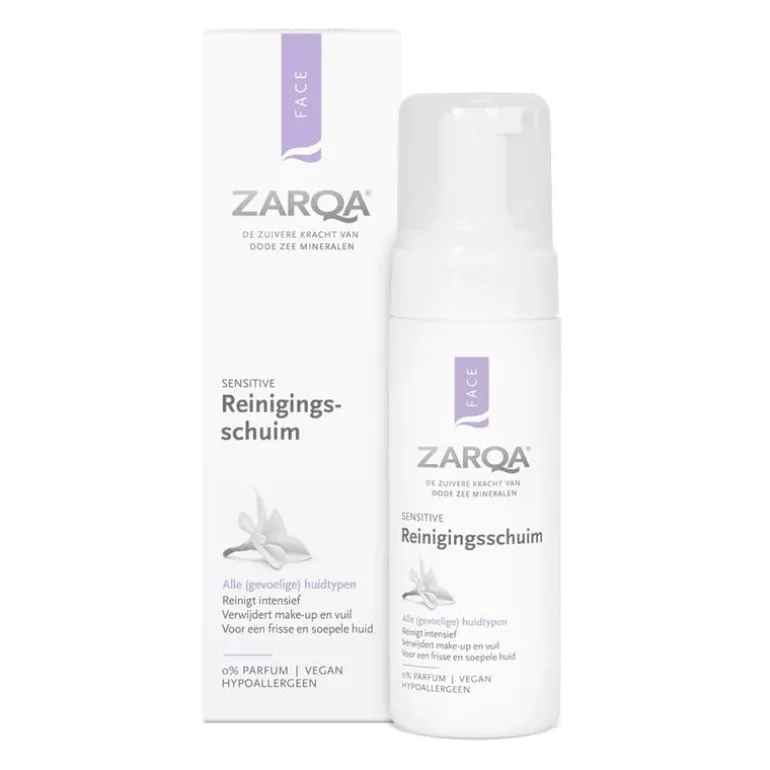 Zarqa Reinigingsschuim reinigt de huid op de meest zachte wijze tot diep in de poriën. Verwijdert make-up, talg en onzuiverheden zonder de huid uit te drogen. Na gebruik voelt de huid fris, schoon, soepel en niet trekkerig aan. Zarqa Reinigingsschuim helpt de huid te beschermen tegen schadelijke invloeden van buitenaf en is geschikt voor alle huidtypen, zelfs de meest gevoelige.