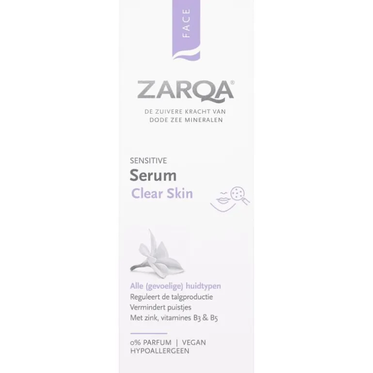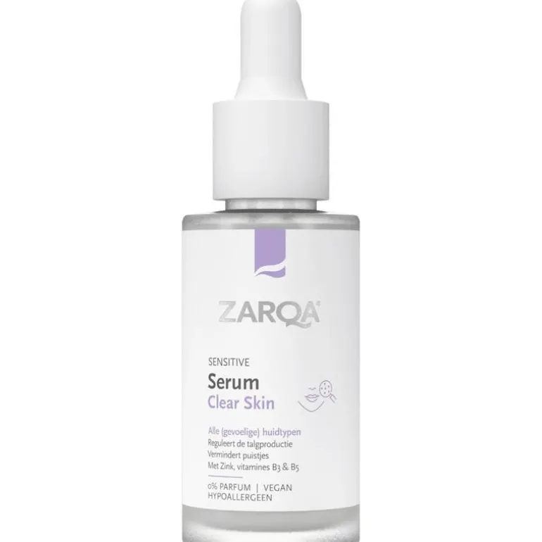 ZARQA Serum Clear Skin met mineralencomplex zuivert en ondersteunt de balans van de vette huid. Zink, vitamines B3 & B5 reguleren de talgproductie en verminderen het glanzende uiterlijk van de vette huid. Puistjes en mee-eters worden voorkomen. De lichtgewicht formule trekt snel in tot diep in de huidlagen.